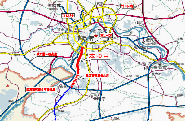 新港高速公路起于武英高速,向南从涨渡湖东侧穿过,在双柳街挖沟东侧跨越长江到达鄂州市华容区,向南穿过七磷湖后接鄂黄高速,路...