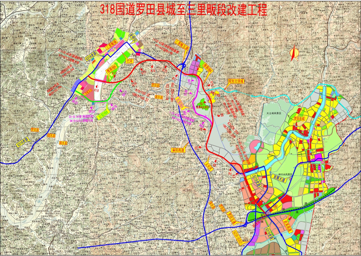 318国道罗田县城至三里畈段改建工程起点位于罗田县凤山镇,东起罗田县客运中心与发展大道交叉口处,起点约2.7km段利用城市主干路...